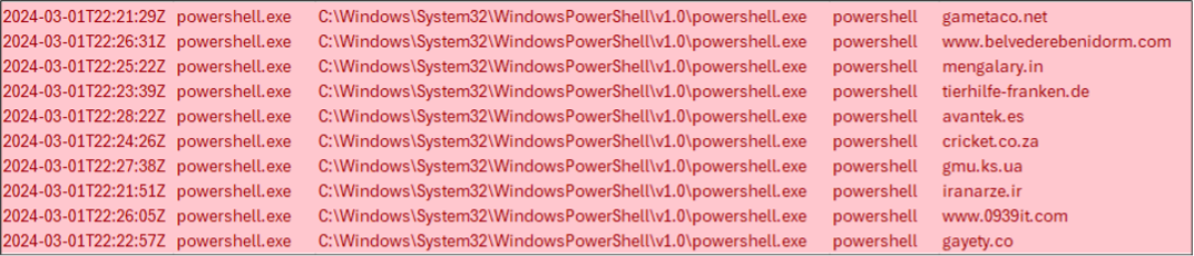 However, examining the URL history, we observed PowerShell.exe reaching out to the following domains, as shown in Figure 5. Third-stage payload